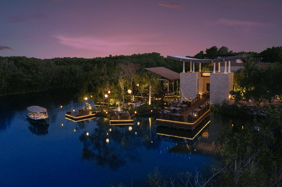 Durante la experiencia culinaria nos acompaña la luz de las estrellas y las flamas de antorchas, sus reflejos danzando en el agua entre los manglares. Un restaurante íntimo perfecto para ocasiones especiales, Saffron es una experiencia única.