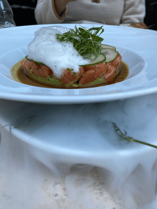 En TRIVVU degusté manjares excepcionales, como el tartar de salmón cítrico, marinado con jengibre y espuma de limón y el tartar Angus, marinado con mostaza Dijon, puré de estragón y betabel, chile güero y papas francesas trufadas. También probé las sabrosas empanadas de cabrito con chimichurri de epazote, habanero con jarabe de rosas y jitomate rallado con chile serrano, y los calamaretis al humo de mandarina, arugula y mayonesa de trufa.
