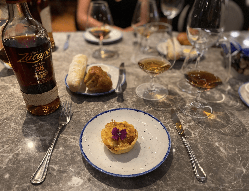 Los sabores de menú maridaron exquisitamente con los elixires de Ron Zacapa. Un experto en ron nos llevó de la mano a descubrir las peculiaridades y excelencia del Ron Zacapa Ámbar elaborado con el sistema solera de 12 años, de 23 años y un espectacular X.O. con increíble sedosidad y suavidad en boca.
