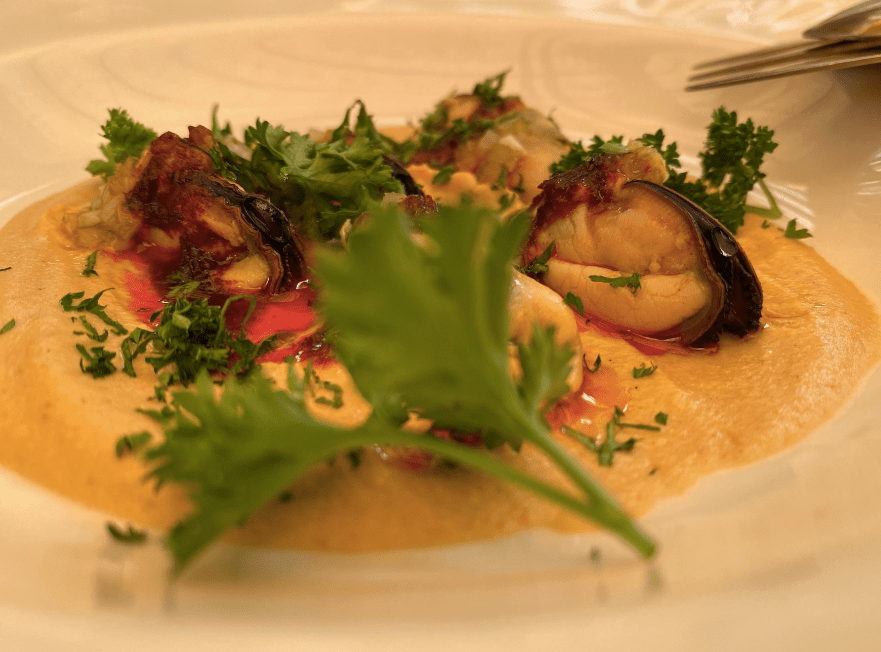 Alfredo Villanueva, que durante largos años fue uno de los emblemáticos chefs de Monterrey, en Romero y Azahar, es ahora una de las figuras más sonadas del Valle, en Vila Torél, dentro de Bodegas Santo Tomás. En el aniversario del restaurante, el chef nos sedujo con Berenjena rostizada con jocoque y pescado ahumado, mejillones en escabeche y ostiones con su chile de ajo.