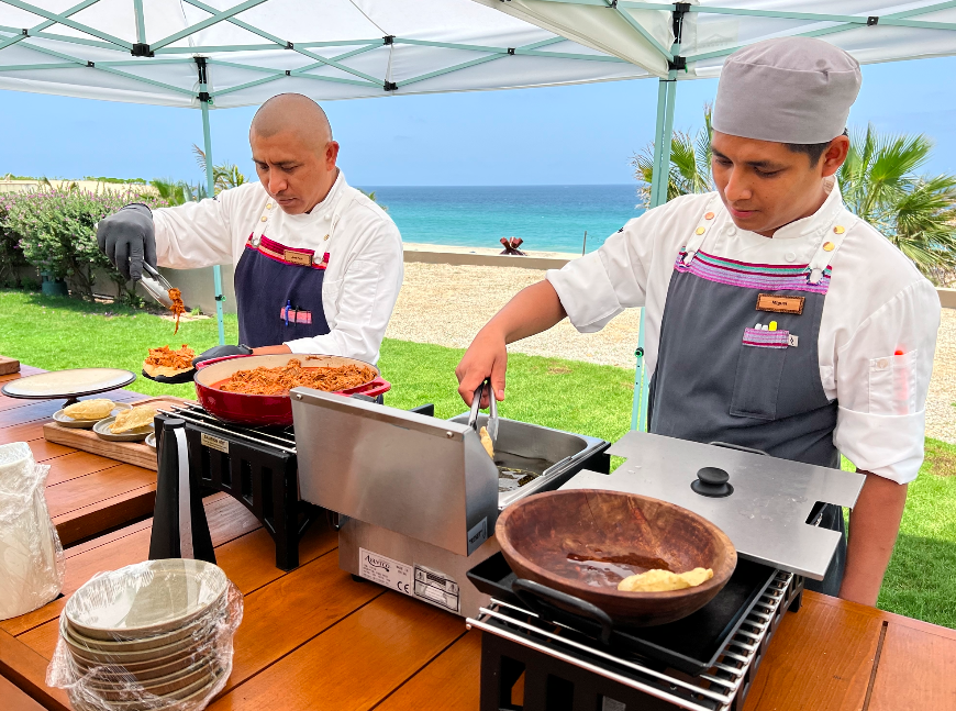 El Chef Poch nos llevó de la mano a descubrir y aprender las técnicas tradicionales para preparar exquisitos platillos mexicanos, la cochinita pibil y la salsa Xilpec. En una de las hermosas explanadas del resort, esta divertida clase de cocina culminó en la degustación de los platillos que aprendimos a elaborar.
