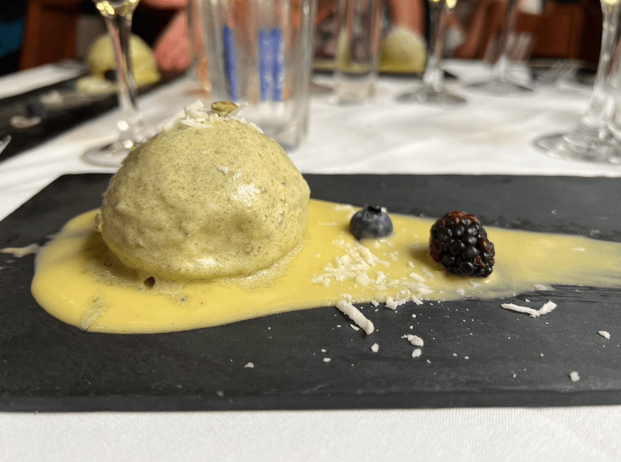 Aquí, el chef Gerardo Quezadas nos sorprendió con creaciones sabrosas para celebrar el chile en nogada, como chile con mole y queso de cabra, chile empanizado con granada y de postre pan de pistache con coco.