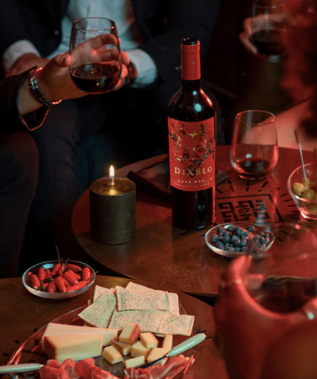 El vino Diablo 2018, ensamblaje tinto, deslumbra por su color rojo oscuro e intenso, seduce gracias a sus atractivos toques de frutas negras, los que se funden con delicadas notas de moca y vainilla cremosa. Este vino entrega una agradable mezcla de sabores y sensaciones que envuelven y cautivan, desde un comienzo.