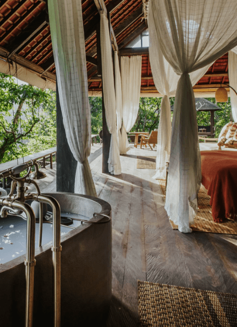 Extendiéndose sobre un sitio lejos de las áreas comerciales, donde podemos contemplar las vistas despejadas de las montañas de siete picos, tener acceso al río Ayung y pasear por su cascada virgen, Buahan es uno de los enclaves menos explotados de Bali. Aquí el resort y su concepto de villas sin paredes ni puertas ofrece a los huéspedes una “Experiencia desnuda” única en comunión con la naturaleza.