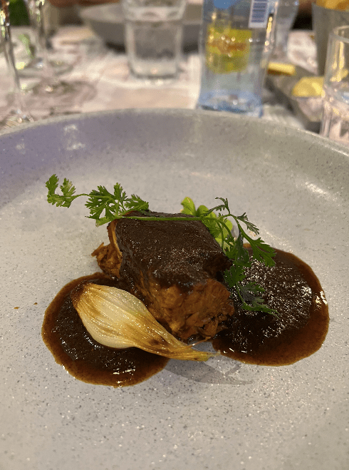 Continuamos con un delicioso Manchamantel con lomo prime cab, maridado con el cabernet franc Zaha. El ‘paso 5’ fue un conejo braseado al pulque en salsa de chile pasilla, maridado con Colome, Amalaya gran corte de Salta.