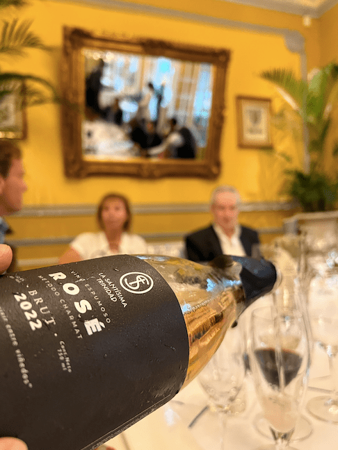 Maridamos esta deliciosa comida con los vinos de La Santísima Trinidad, deleites mexicanos que nos hablan de lo mejor de la tierra de San Miguel de Allende. Tuvimos el placer de disfrutar sus vinos blancos, tintos y una joya única: el vino rosado espumoso 2022, una delicia de método charmat, fresco y coqueto.