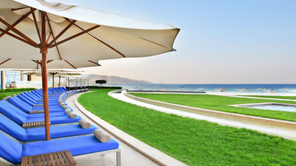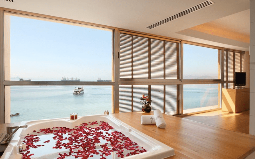 La fascinante arquitectura del hotel, que florece con la maravillosa iluminación de la fachada por la noche, ofrece vistas al Mar Rojo desde todos los rincones, y su ubicación estratégica desde las principales atracciones de Jordania, como Wadi Rum, Petra y el Mar Muerto, nos asegura una aventura memorable como ninguna otra.