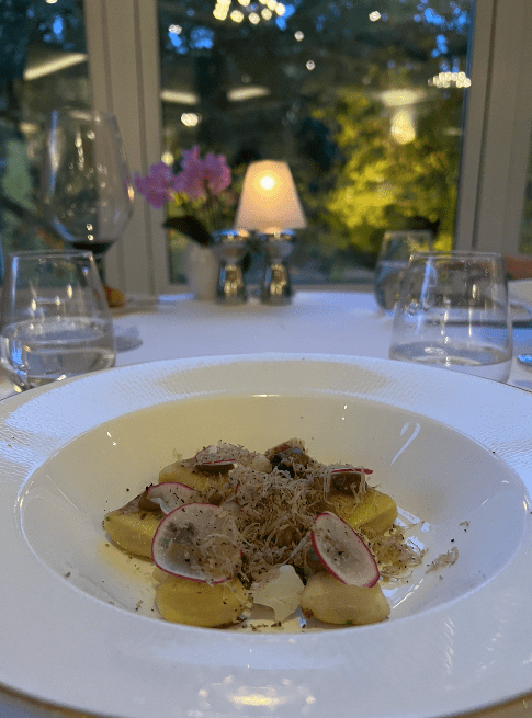 Después gocé de deliciosos ñoquis con alcaparras, pasas doradas, parmesano añejo, coliflor y un sabroso veloute de trufa, un manjar que combina sabores de Italia e Irlanda de manera exquisita y delicada. Maridando los platillos con una rica copa de vino de su extensa carta, cada instante fue una aventura de hedonismo.