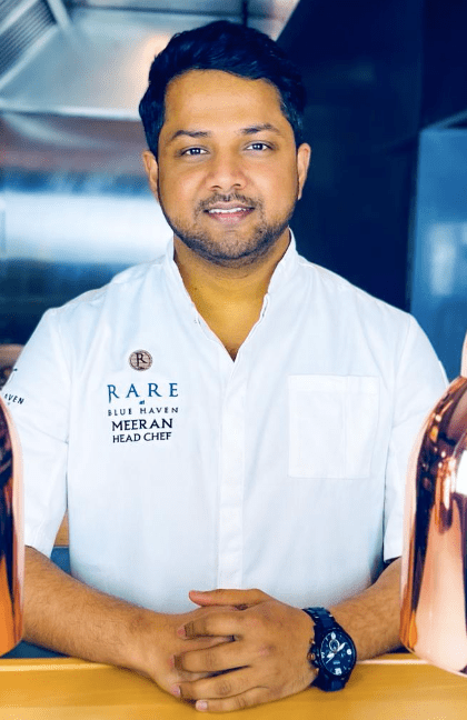 Meeran tiene un Diploma en Producción de Alimentos del Instituto Nacional de Administración Hotelera en Cheenai, India y un Bsc Hons Culinary Arts Management de la Universidad de West London, y un currículum de experiencia muy emocionante; comenzó su carrera en Metropolitan Hotel Park Lane, Londres y trabajó para Dorchester Collectio.