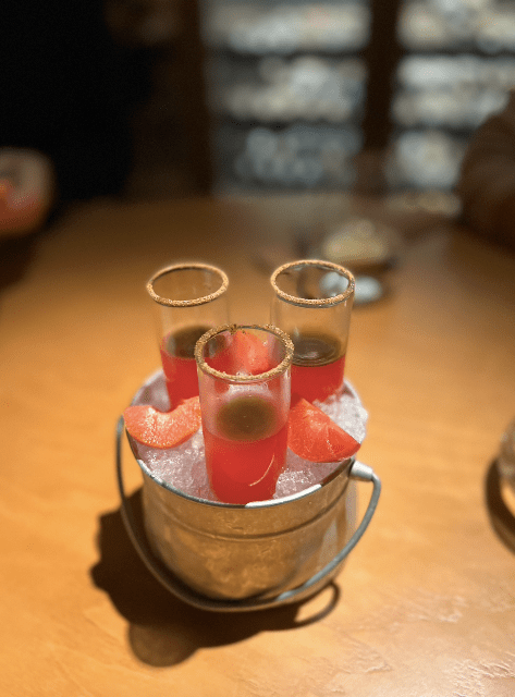 Comenzó la noche con un jugo de pepinillos con ciruelas encurtidas, preparando el paladar para el viaje sensorial. El primer platillo fue el tradicional ‘pide’ turco, un largo pan al horno de leña con mantequilla y miel cosechada a 2000 metros de altura, presentada dentro de un hueso con una típica carne jugosa.