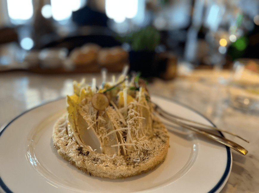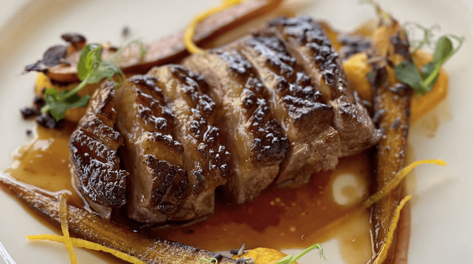 En el menú también nos encontramos con deliciosos platillos clásicos como el pichón entero asado con zanahoria baby, puré de chirivía y salsa de cerezas de temporada, y las típicas vieiras a la plancha francesas con habas, espárragos, tomate, cebollino y beurre blanc.