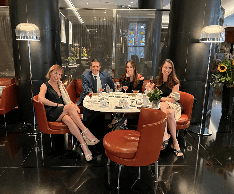 Aquí, se le dio rienda suelta al destacado arquitecto y diseñador Antonio Citterio para crear un entorno fiel tanto al legado de diseño de Bulgari como al estatus de Londres como una de las ciudades más emocionantes, dinámicas e internacionales del mundo. Con un diseño contemporáneo del estudio de arquitectura ACPV ARQUITECTOS Antonio Citterio Patricia Viel, The Bulgari Lounge es donde se lleva a cabo el té de la tarde, en este espacio que rezuma lujo, fuertemente perfumado con la fragancia de Bulgari donde nos sentamos frente a la chimenea, debajo de un enorme póster en blanco y negro de una estrella de cine italiana.