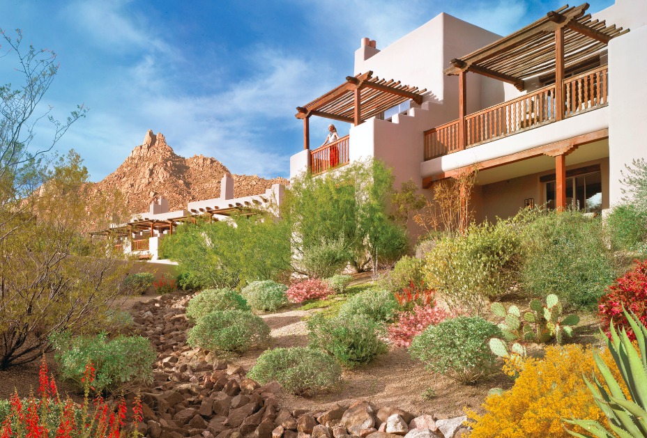 Ubicado en 40 acres de vibrantes flores del desierto, Four Seasons Resort Scottsdale está diseñado para integrarse perfectamente con el medio ambiente, con casitas de estilo adobe, todas con una terraza o patio al aire libre, enmarcadas por los escarpados precipicios de Pinnacle Peak Park. Las abundantes oportunidades para conectarse con el desierto de Sonora que lo rodea incluyen caminatas en el lugar, recorridos de paisajismo y clases de yoga y acondicionamiento físico al aire libre.