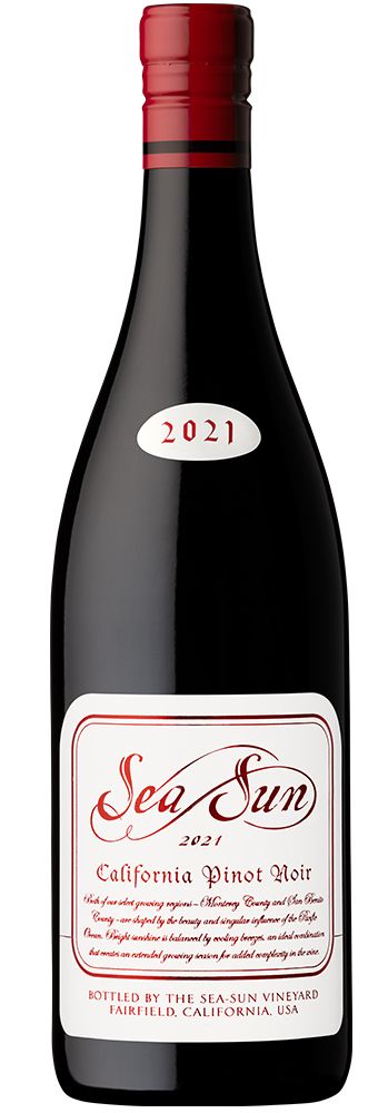 Sea Sun celebra nuestra continua exploración de California y su gran diversidad de tierras. Nuestro Pinot Noir proviene de regiones costeras de primer nivel, con brisas refrescantes del Océano Pacífico que equilibran el calor brillante del sol.