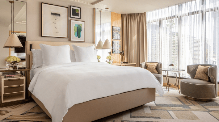 Por las noches, cuando los huéspedes se retiran a su habitación, pueden hundirse en una cama Four Seasons Bed y caer en un sueño profundo con el apoyo de un kit especial para dormir proporcionado por el equipo del spa y creado por los expertos de Organic Pharmacy. Durante la estadía, los huéspedes tendrán acceso completo a las instalaciones del spa en el piso 10, que cuenta con nueve salas de tratamiento, cada una con ventanas del piso al techo, bañadas en luz natural para disfrutar de la vista u oscuras para brindar soledad durante los tratamientos. Las suites termales ofrecen instalaciones separadas para damas y caballeros, que incluyen una piscina de vitalidad fresca de 32 grados, baño de vapor de eucalipto y sauna de pared de sal del Himalaya para obtener beneficios de refuerzo inmunológico con vista, perfecto para relajarse antes de los tratamientos.