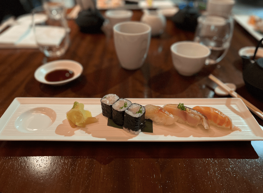 Desde un sabroso tiradito de hamachi con jalapeño y delicados nigiris de salmón, hasta atún sellado con la icónica salsa Matsuhisa y una exótica selección de hongos japoneses cocinados, cada platillo de mi experiencia en este edén culinario fue un universo de sabores, aromas y texturas. Dentro una hermosa caja de madera clara japonesa me encontré con un espectacular pastel de chocolate caliente y helado de matcha.