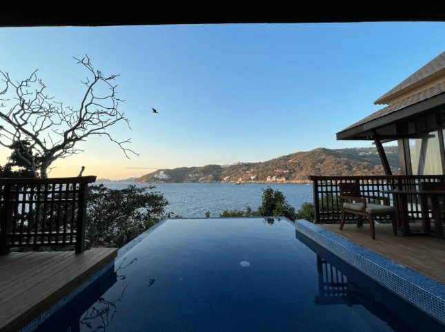 Desde la alberca privada de mi villa, sobrevolando la selva, los ricos y el mar, me dejo llevar por la exquisitez del servicio, la atención y la belleza misma del hotel, la cual resalta arquitectura tailandesa con toques de diseño y arte auténticamente mexicanos.