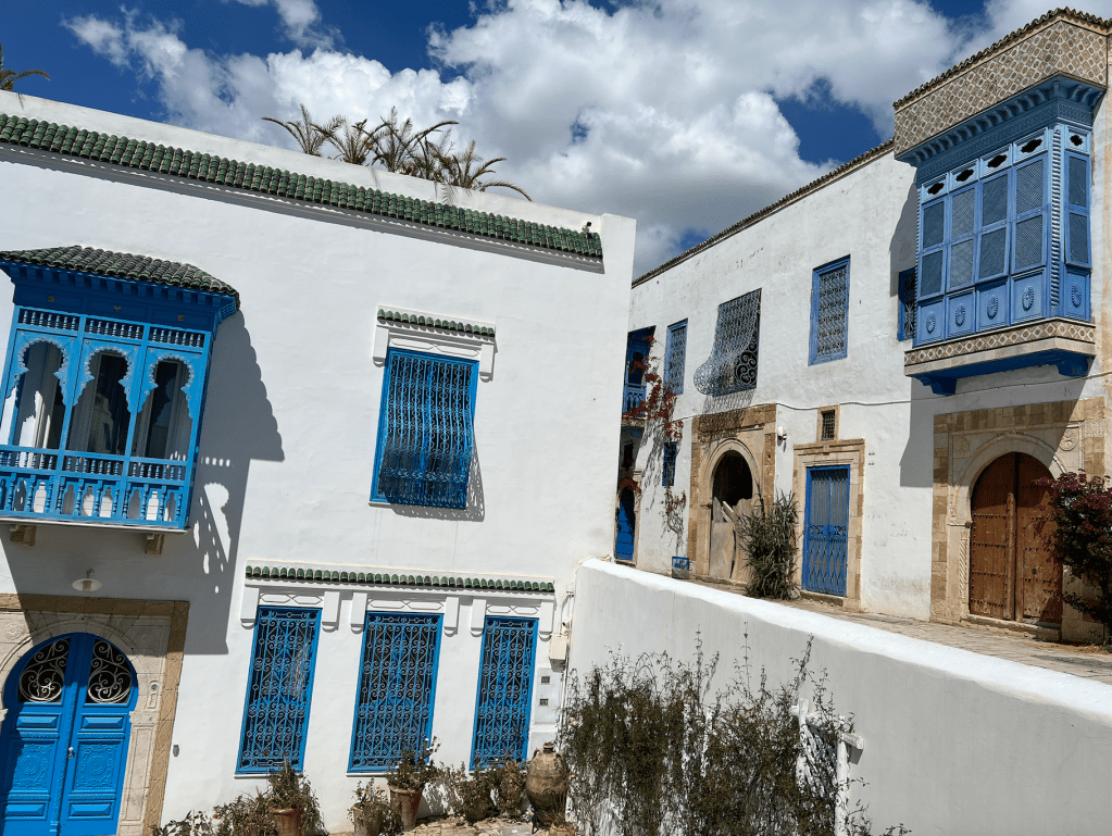 Después de conocer los impresionantes baños de Antonin, el acropolis de Byrsa y los históricos puertos Púnicos, nos dirigimos a un destino de encanto único: Sidi Bou Said. Este pequeño pueblo sinuoso se alza en la colina, construido completamente con piedra blanca y ventanas azules. Disfrutando de un jugo de naranja en un café, viendo el ir y venir de barcos en la majestuosa bahía, me enamoré de la bella arquitectura y diseño, y de la indefinible alma de Sidi.