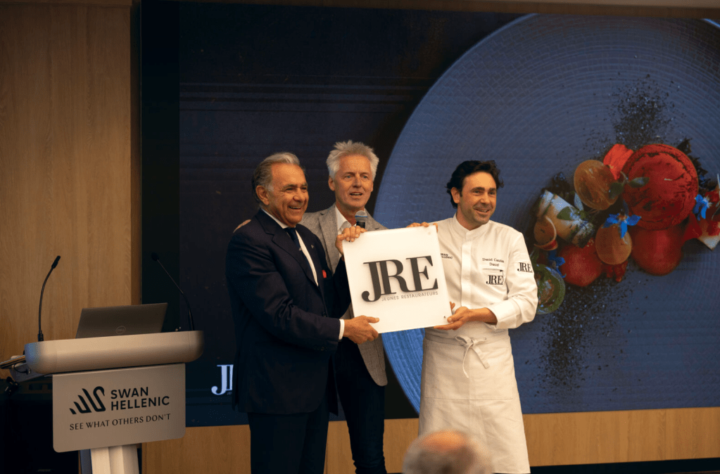 La suntuosa cena de gala que siguió a bordo también marcó el lanzamiento oficial de Maris, una nueva y emocionante asociación con JRE-Jeunes Restaurateurs, que ofrece a los huéspedes de Swan Hellenic una experiencia única de comidas excepcionales y descubrimiento a través de los sentidos, vivida con los chefs de fama mundial de la organización gourmet.