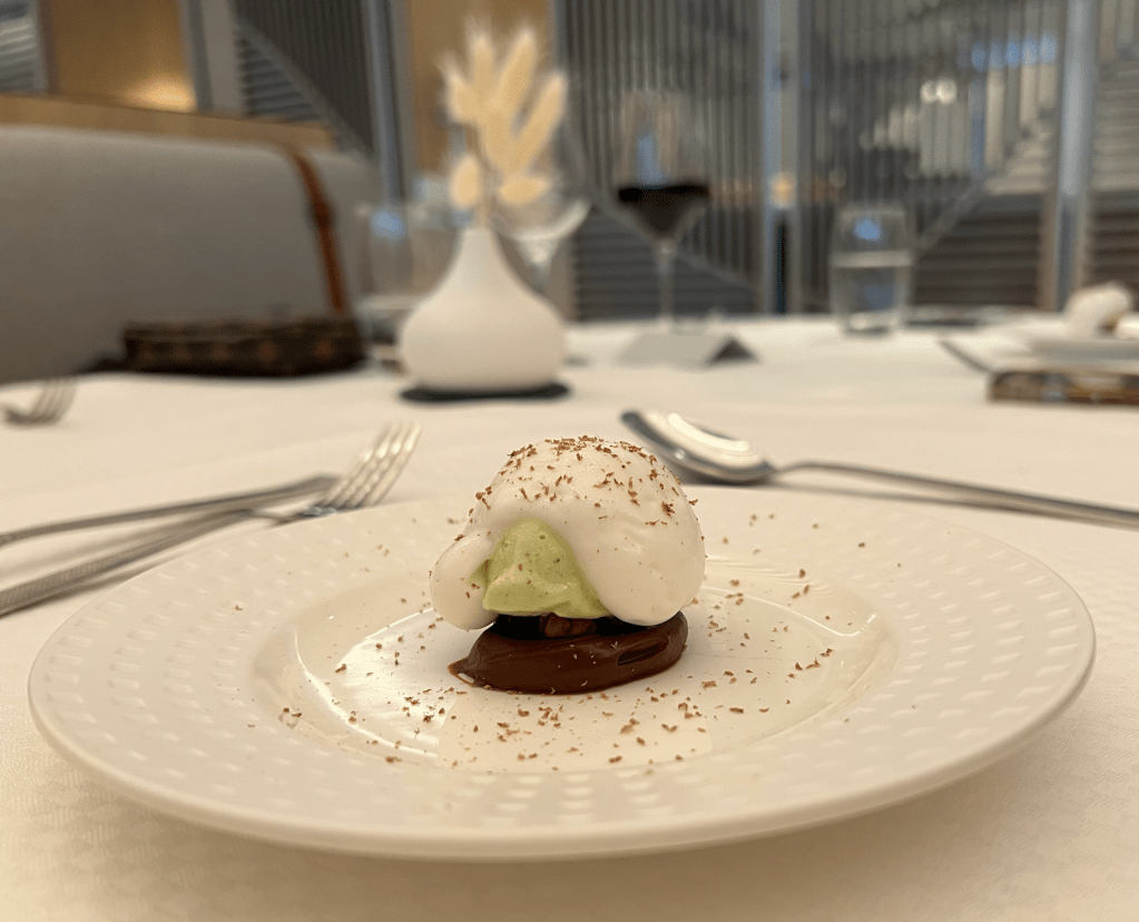 Sabrina Schanz y Patrick von Vacano de Original Beans elaboraron el primer postre de la experiencia con chocolate Piura de 75% cacao, calpico, cocoa nibs y shiso, y el chef Michael Ammon, también galardonado con una estrella Michelín, de Gasthof Jakob, el segundo postre, con chocolate Beni Wald 65% cacao, queso de cabra, ganache y ruibarbo.