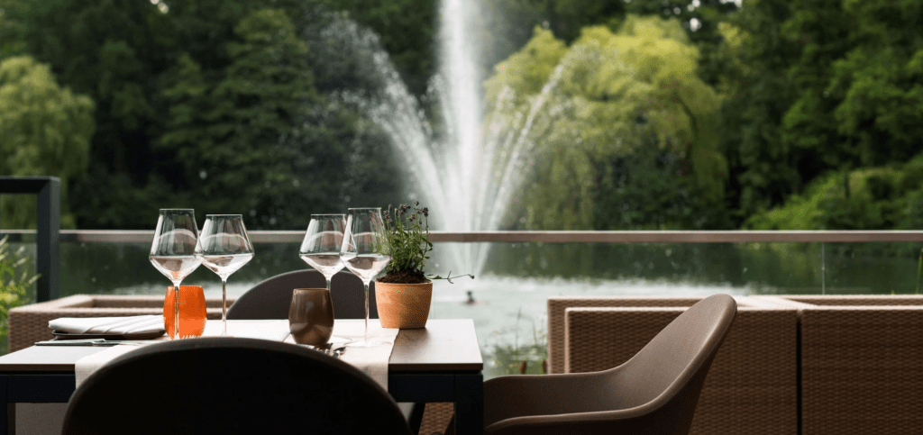 Por la ventana del elegante pero relajado K-Lounge – con sus icónicas pinturas y chimeneas – vislumbro el show de luces, sonido y agua en las fuentes del lago del hotel, celebrando la llegada del verano. Con una rica copa de vino Alemán en la mano, me dejo llevar por el encanto del momento y la intangible magia de esta estancia de ensueño.