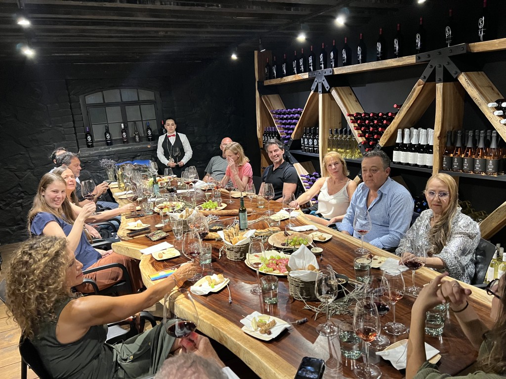 Discretos y secretos, los pasajes subterráneos de La Santísima Roma conducen a una hermosa bóveda, donde uvas, flores y las elegantes copas Riedel decoraban una larga y majestuosa mesa de madera parota. Rodeados de vinos, un exclusivo grupo de amantes del mundo vinícola tomamos un viaje sensorial en este magnífico espacio, degustando los sabores de las joyas embotelladas de La Santísima Trinidad.