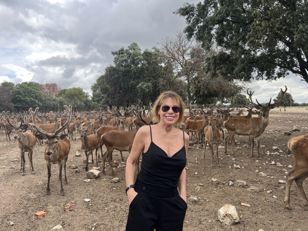 Veo los majestuosos cuervos de los ciervos asomándose entre los árboles y rápidamente estoy rodeada de este hermoso animal, acercándose con delicada curiosidad hacia mí. Presentes en el logo de los increíbles vinos Arzuaga, los ciervos son un ícono de la hermosa Ribera del Duero, esta tierra de sol y vino en España.