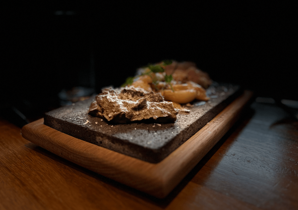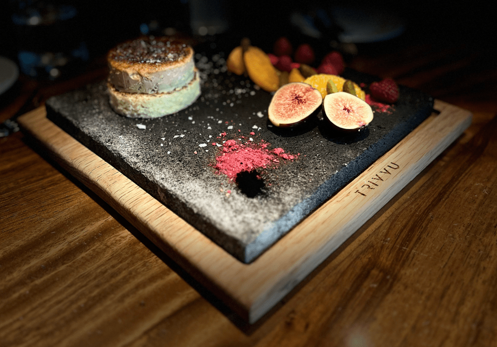 Cada presentación, carne y emplatado es para nada convencional en TRIVVU, con el humo abrazando a las proteínas colgando entre una parrilla personalizada, donde una caja de madera esconde una sorpresa culinaria, e incluso una lanza que nos invita a cazar el postre más exquisito en este hotspot en el corazón de Polanco.