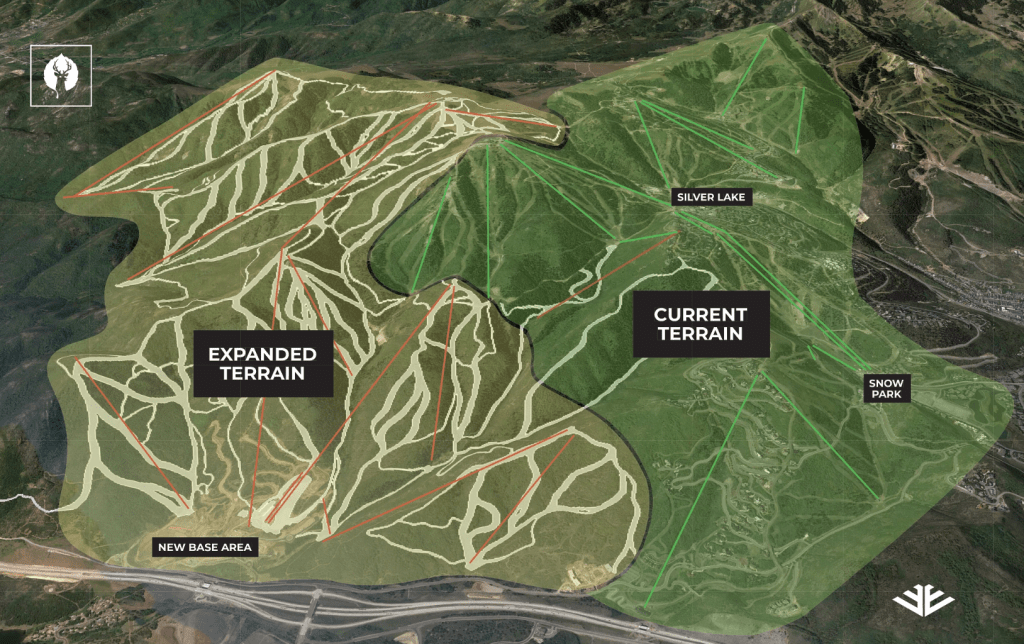 El terreno ampliado abarcará 16 nuevos telesillas, incluida una góndola para 10 pasajeros, y acceso para esquiar a través de las montañas South Peak, Park Peak, Big Dutch, Pioche y Hail en el lado este de Bald Mountain de Deer Valley. Con una caída vertical de casi 3,000 desde el punto más alto en Park Peak a 9,350 pies, el terreno adicional ofrecerá esquí para todos los niveles en 135 pistas de esquí planificadas, incluidas varias pistas abiertas y zonas alegres.