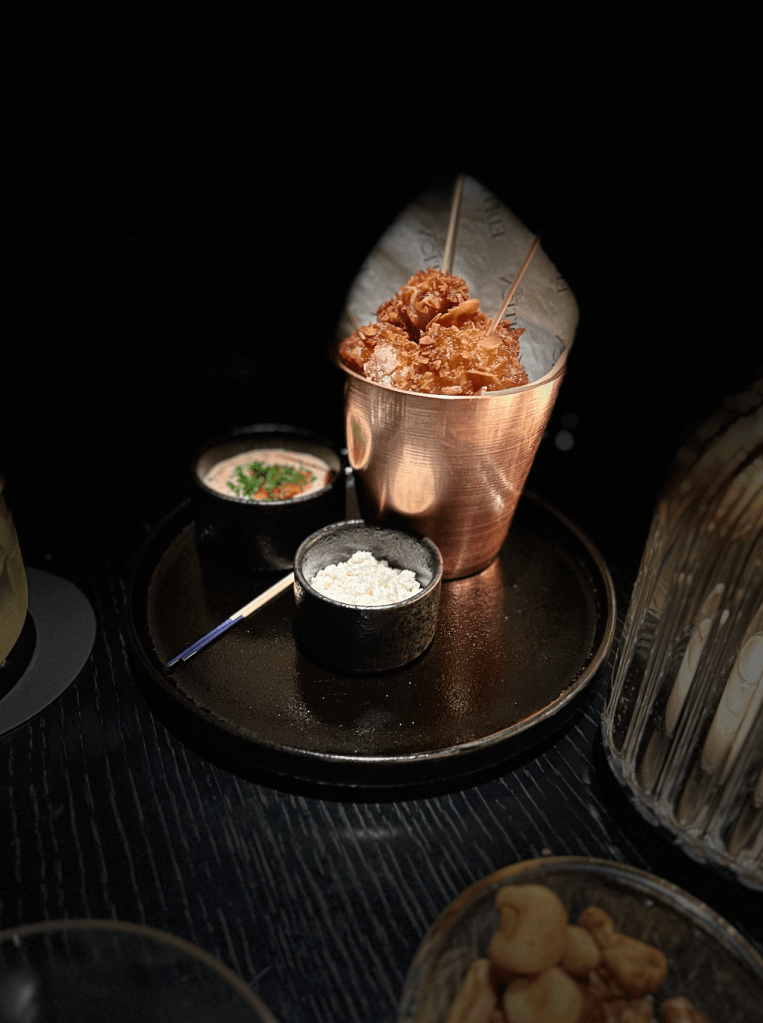 Incorporando técnicas modernas y sabores japoneses locales, el menú de comida de the Gold Bar es exquisitos; aquí tuve el placer de probar pequeños platos divertidos para compartir inspirados en “Izakaya”, un bar informal de estilo japonés, como el celebre sándwich de chuleta de ternera Wagyu – un manjar.