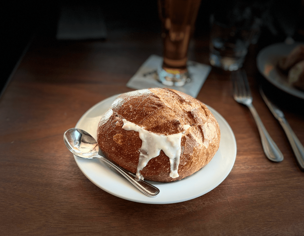 Aquí no puede faltar degustar aquí el chowder, el cual es presentado dentro de un pan artesanal y logrado a la perfección, sabroso y auténtico.