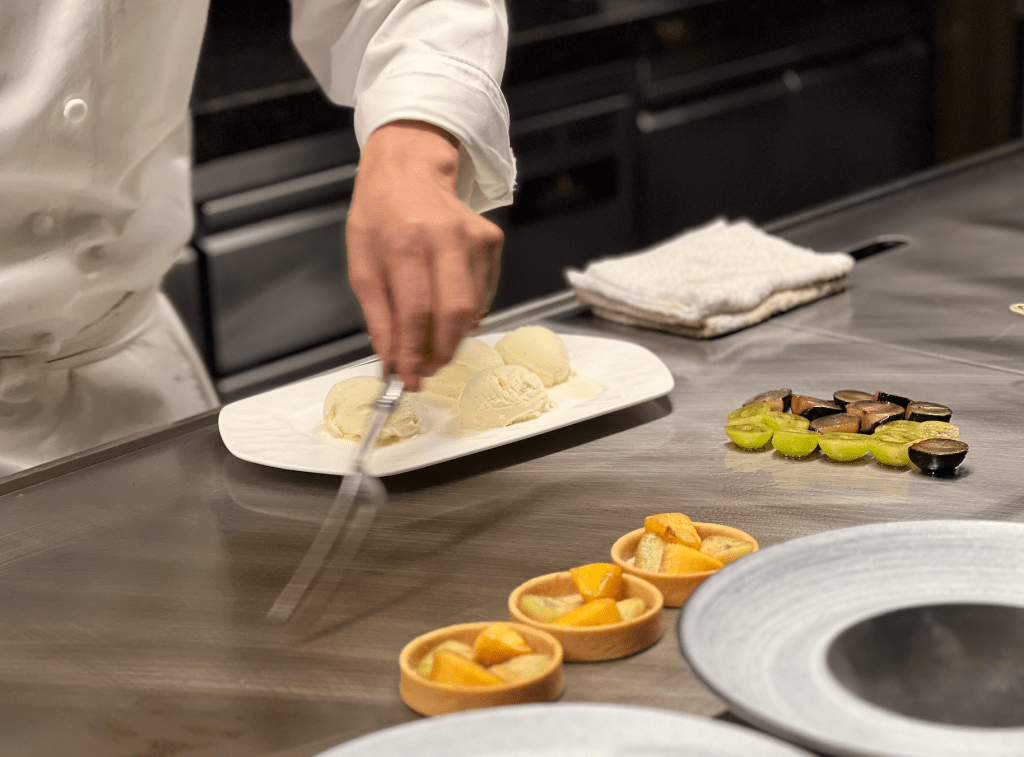 En este hermoso espacio culinario tuve el placer de disfrutar del teppanyaki en su máxima expresión. Elaborada frente a mi, la cena fue un espectáculo de sabores y aromas. Disfrutamos de pescados y carnes con diferentes preparaciones y diversas presentaciones, acompañados de una serie de tipo de sal y verduras locales.