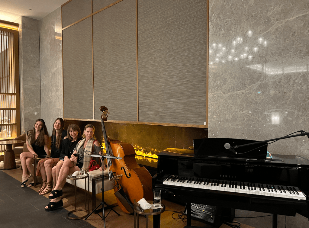Después de disfrutar la cena nos espera el sofisticado pero relajado ambiente de The Flying Stag, un elegante pub con sofás bellamente diseñados, una chimenea y obras de arte especialmente seleccionadas. Aquí se sirve un té tradicional con un extenso menú de té y dulces de un galardonado chef pastelero con notas de musica en vivo en el aire.