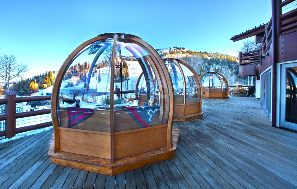 Seis Alpenglobes de tamaño natural se encuentran en lo alto de la cubierta del Mountain Lodge para disfrutar de una lujosa experiencia gastronómica al aire libre. Estas cúpulas claras y únicas ofrecen una atmósfera completamente cerrada y con clima controlado con cautivadoras vistas panorámicas de Deer Valley para que disfrutemos de cenas y momentos al aire libre – cuatro globos tienen capacidad para 6 invitados y dos tienen capacidad para ocho invitados.