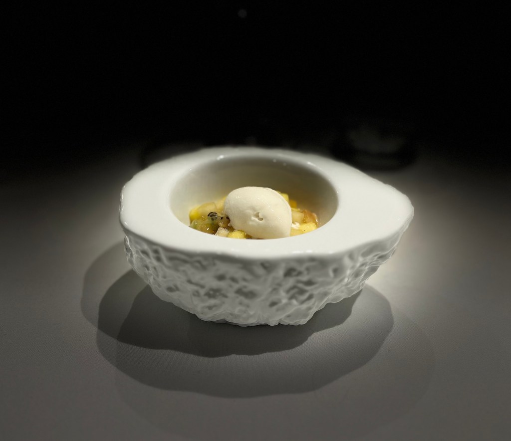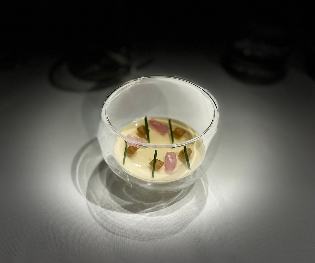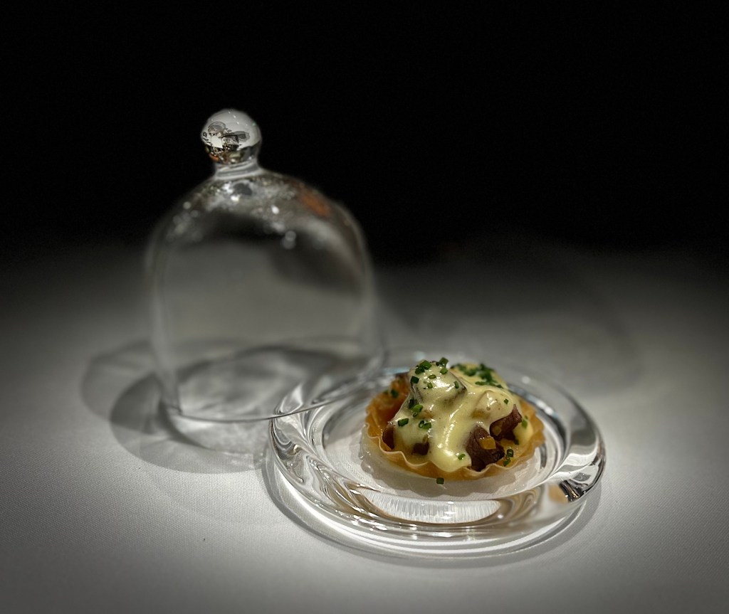 Una refinada selección de los mejores platillos del 2023 deleitaron mis sentidos en la elegante cena de año nuevo que se vivió en Alinna. La mágica velada comenzó con tres amouse bouches: la tartaleta de camarón y salsa holandesa, la croqueta de foie gras y trufa, y el icónico mini sándwich de duxelle de hongos del chef.