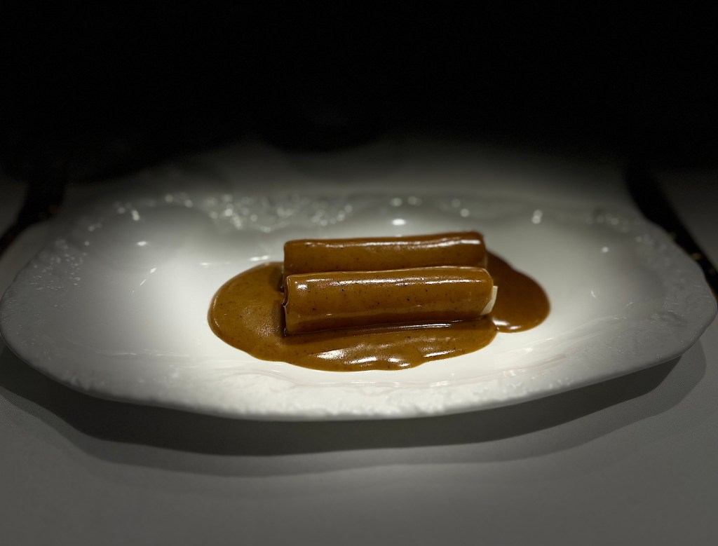 Continuamos con un espectacular royale de espárrago blanco, gelée de foie gras, picatostes y pickles de echalote, y con un excelente canelón de txangurro, beurre blanc y huevas de mujol. Vinos de todo el mundo acompañan estas las veladas culinarias, permitiéndonos viajar por el planeta a través de nuestro paladar.