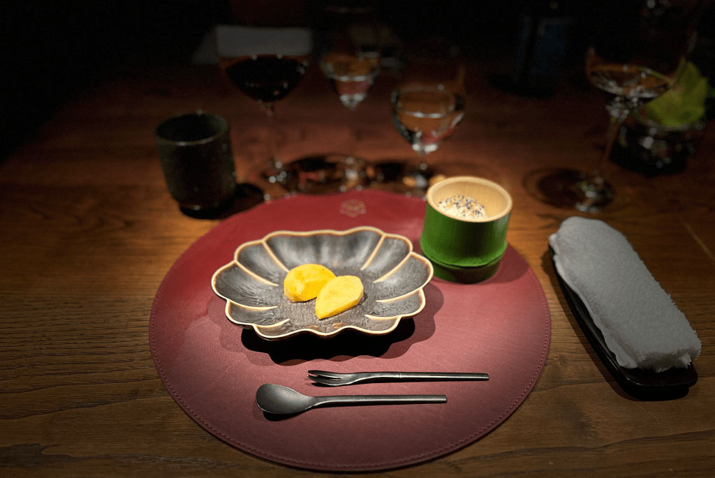 El menú cambia constantemente, con las temporadas, y mezcla a la perfección elementos tradicionales de la renombrada cocina japonesa con métodos innovadores internacionales. Durante la cena de temporada Kinshu tuve el placer de degustar manjares como higo foie gras, erizo de mar con castañas, pato con naranja, pimiento japonés con salsa yuzu, y un exquisito corte de carne wagyu con miso, jugoso, suave y sabroso.