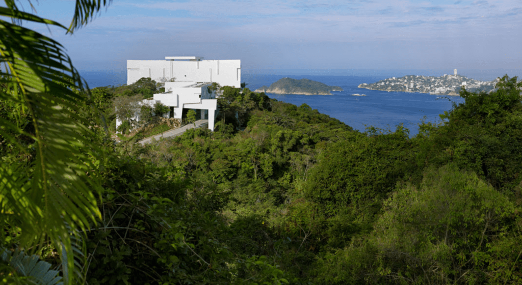 La imaginación infinita del renombrado arquitecto Miguel Ángel Aragonés ha realizado una rica y original obra arquitectónica a lo largo de más de dos décadas. Este espejismo y juego óptico es el reflejo perfecto de su estilo incomparable, con el mágico toque final de una vista espectacular tanto de la bahía de Acapulco como de la bahía de Puerto Marqués.