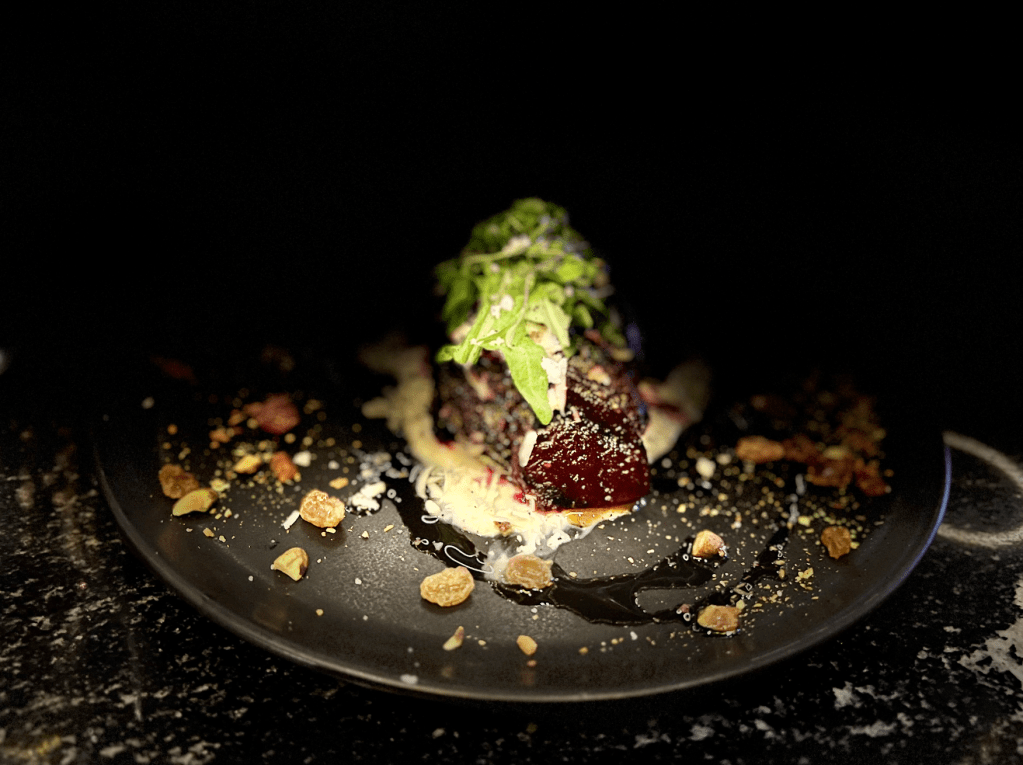 Entre mis platillos favoritos de esta joya culinaria se encuentran los tacos de setas marinadas en salsa de pastor tradicional, acompañados de salsa agridulce de piña, la cazuela de camarones el ajillo con un toque de mezcal, papa cambray al josper y chile guajillo, y el ceviche de estilo peruano de pesca sustentable en leche de tigre, granos de elote, camote frito y chile manzano.