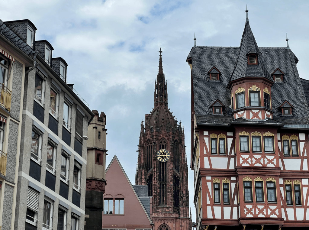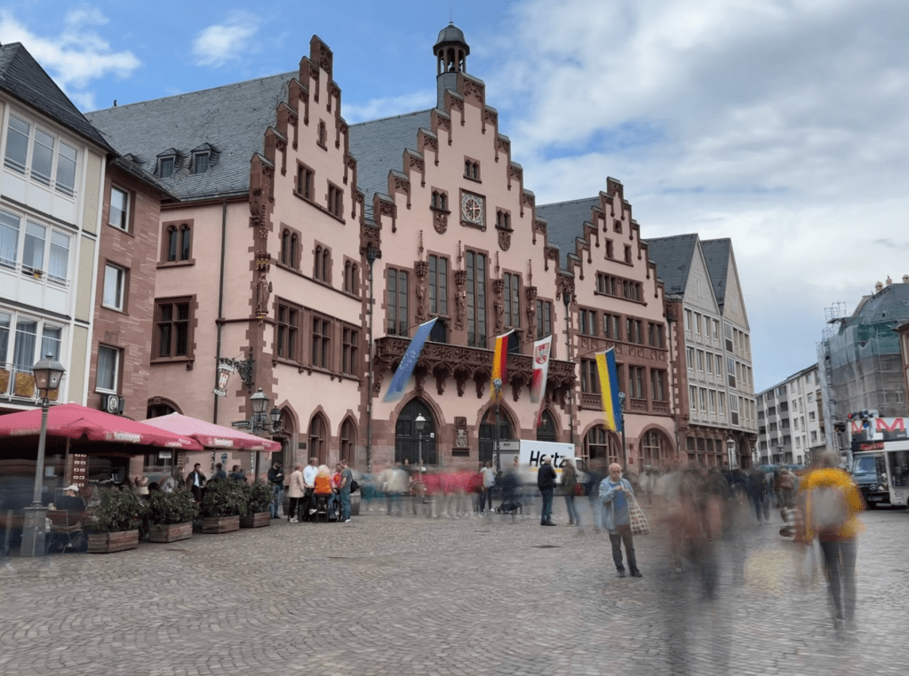 Llamada Römerplatz, la plaza principal de la ciudad de Frankfurt es un portal al pasado. Aquí se encuentra el edificio más identificable de Frankfurt, el Römer – una construcción medieval y uno de los monumentos más importantes de la ciudad. El Römer está ubicado frente a la iglesia Old St. Nicholas y ha sido el ayuntamiento de Frankfurt durante más de 600 años.