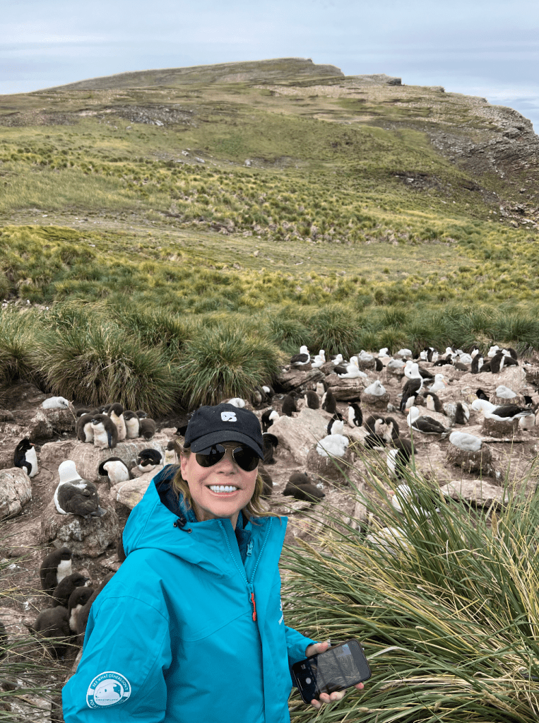 Las islas se encuentran en el límite de las zonas climáticas oceánicas sub-antárticas y de tundra – su fascinante ambiente es testigo de su remota ubicación. Nuestra primera bajada fue en West Point; fundada por exploradores británicos en 1765, el paisaje único de la isla incluye las playas de The Neck llenas de la cacofonía de colonias de pingüinos penacho amarillo, papúa y rey, y fue posible ver los nidos en forma de pilares de albatros de ceja negra.