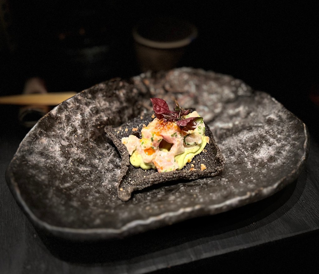 Desde el momento en que cruzas la puerta, te reciben detalles que fusionan la esencia de México y Japón: piedras negras de Japón y vasijas artesanales de Oaxaca decoran el íntimo espacio interior. Es un lugar donde la artesanía culinaria y la conexión con los ingredientes frescos se celebran con devoción.