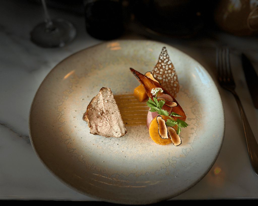 Mi experiencia en esta zona de La Dordogne culminó en el restaurante Bandiat, donde la mesa se convirtió en un festín de sabores. Cada plato era una obra maestra, una sinfonía de ingredientes frescos que celebraban la riqueza de la región con originalidad y un estilo único. Los postres, deliciosos y sorprendentes, me hicieron sonreír, una despedida perfecta para un día lleno de descubrimientos. El chef propietario de Bandiat, Grégoire Rousseau, heredó el gusto por la cocina de su abuela, que dirigía un Relais & Châteaux antes de abrir su propio restaurante, donde Grégoire trabajó desde muy joven. También se inspiró en la tradición durante sus prácticas en restaurantes con estrellas Michelin: Saint-James en Bouliac, Plaza Athénée, y Santi Santimaria en España.