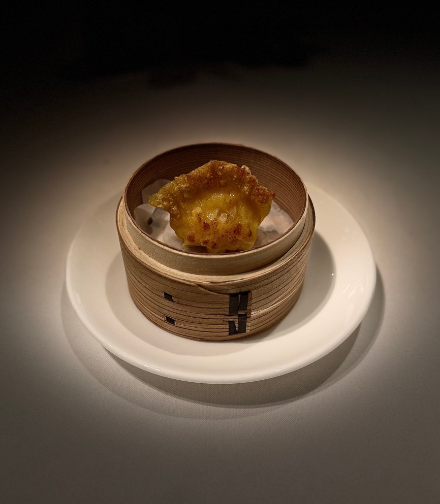 A continuación, la fragancia de los dumplings de langosta azul al vapor llena el aire, y al primer bocado, siento cómo la delicadeza de la langosta se fusiona con la textura etérea de la masa, creando una sensación de ligereza que se despliega lentamente en el paladar. Es una revelación, una pequeña joya que habla de la meticulosidad con la que cada ingrediente ha sido tratado.