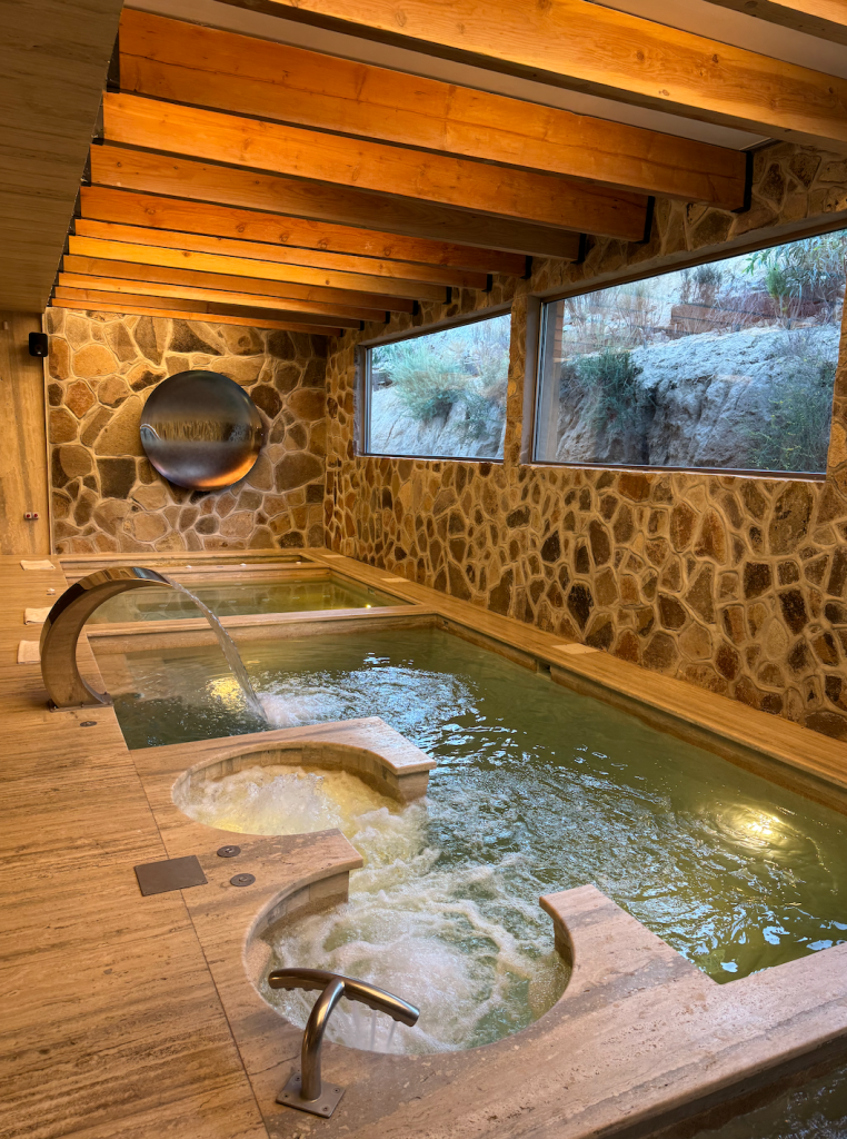 Las villas privadas del Spa, delicadamente decoradas con elementos que evocan la naturaleza circundante, ofrecen un refugio de paz total. La vista al valle, siempre cambiante, se convierte en el telón de fondo perfecto para la contemplación, mientras el sonido del agua y el susurro del viento se entrelazan, creando una atmósfera única. En estos espacios, la desconexión es total, y el visitante se deja llevar por el flujo del momento, entregándose al poder curativo de los elementos naturales.