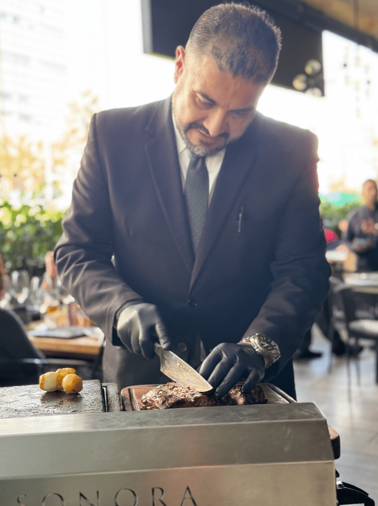 Sonora Prime es un edén para los que somos amantes de la carne, un steakhouse donde cada corte es una obra maestra que revela la destreza de quienes la preparan. Desde el primer vistazo al menú, supe que este sería un viaje gastronómico lleno de descubrimientos. Los cortes de carne premium, seleccionados con esmero, brillaban con promesas de sabores profundos, y la carta de cócteles, como una sinfonía de sabores, me hizo preguntar qué historia me contaría cada mezcla.