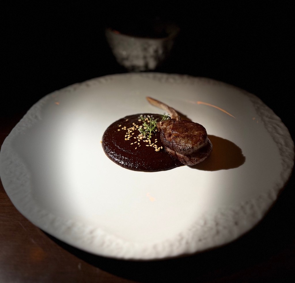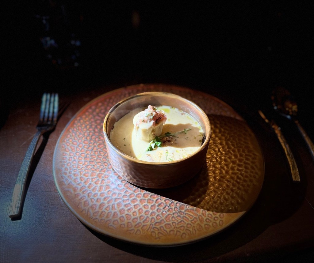 Al llegar, la atmósfera era inconfundible, un equilibrio perfecto entre lo sofisticado y lo acogedor. La cava, con su diseño que evoca una sensación de refugio, me hizo sentir como si estuviera en un rincón privado del mundo, lejos de la rutina y rodeado solo de belleza y tranquilidad. Esta sensación de serenidad es el telón de fondo ideal para lo que fue una experiencia culinaria sublime.