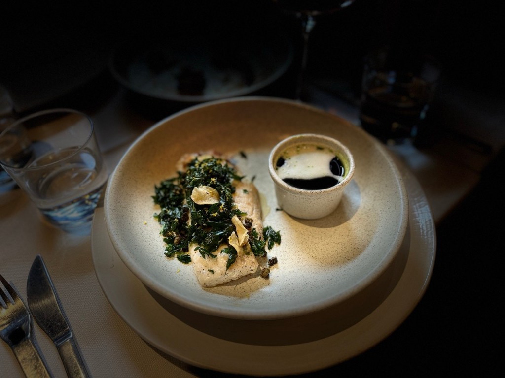 Fue en ese entorno donde viví una experiencia espectacular, la cual comenzó con una flor: una flor de calabaza rellena de ricotta, delicada, vibrante, casi etérea. Era como probar el lenguaje de la primavera, una textura suave que se deshacía con elegancia y dejaba un susurro de frescura en la boca. Luego, la sorpresa del milhojas de alcachofa con trufa, una revelación. Capas que se encontraban en un equilibrio sutil entre lo crujiente y lo tierno, una danza de sabor donde la trufa aportaba un perfume profundo, casi misterioso, que hablaba de tierra y tiempo, de paciencia y alquimia.