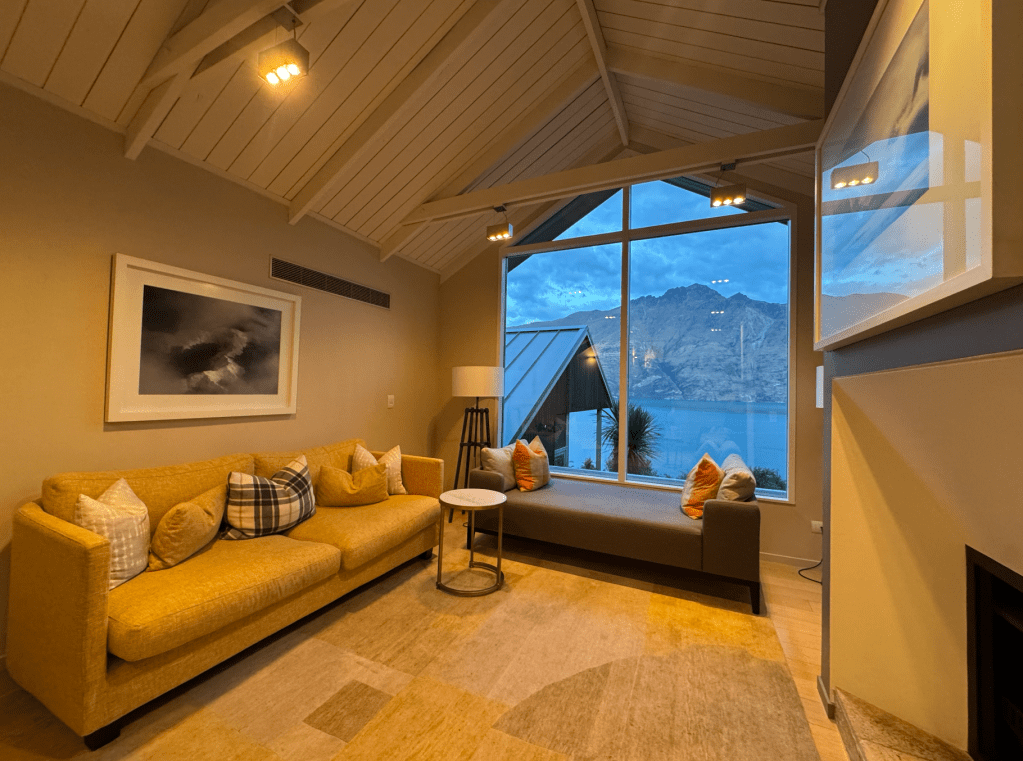 Las suites, bañadas en una luz que parece venir del mismo corazón del día, ofrecen algo más que descanso. Son escenarios de contemplación. Cada línea arquitectónica dialoga con el entorno, cada textura cuenta una historia. Allí, entre mantas suaves, maderas nobles y arte que respira identidad local, el alma encuentra reposo y el cuerpo, un abrazo. Las obras de arte que decoran el espacio son testigos del carácter vibrante de Nueva Zelanda, puentes entre la esencia del lugar y el visitante que se deja tocar por ella.