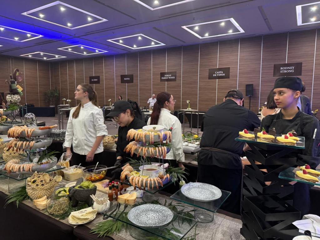 Las mesas de quesos, mariscos y dulces eran orillas donde uno podía anclar entre sorbo y sorbo, mientras los sabores del restaurante Alfredo Di Roma, Chapulín y The Palm dialogaban con las notas del vino en un vals perfecto. Aquel maridaje no fue matemático, fue poético.